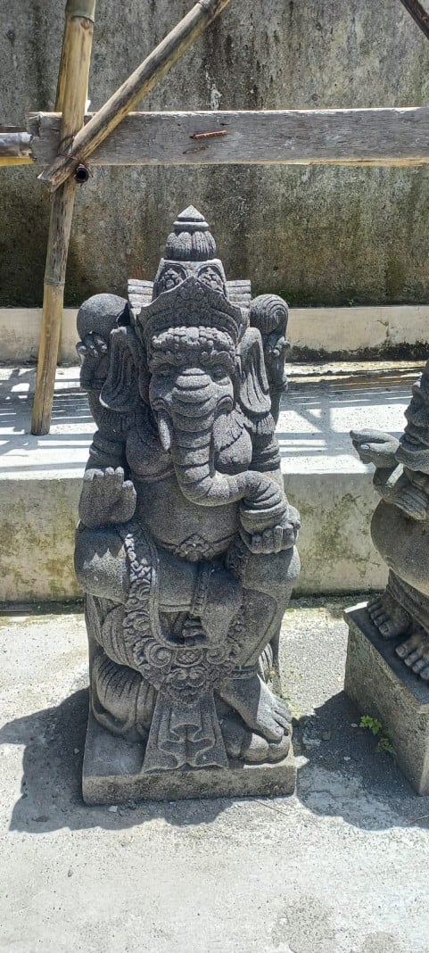 Ganesha tuinbeeld volledig met de hand gekapt uit één massief rotsblok zwart lavasteen uit Java, Indonesië, van hetzelfde steensoort als waar de borobudur en prambanan tempel van zijn gemaakt.