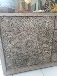 Breng uw interieur in oosterse sferen met deze prachtige teakhouten dressoir met handgemaakt houtsnijwerk. Uniek en bijna nergens anders te vinden in Nederland. Zie foto's voor details.
